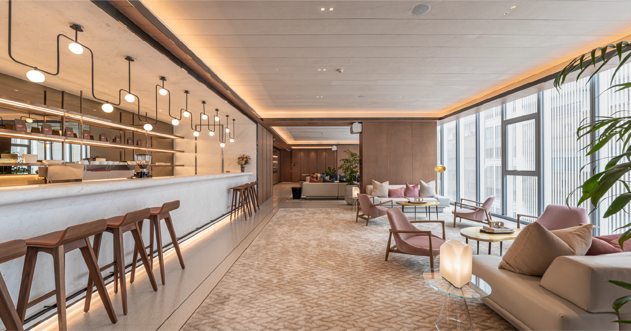 - Club Lounge: เลานจ์สำหรับผู้พักอาศัย ใช้เป็นพื้นที่นั่งทำงาน ประชุม หรือพักผ่อนระหว่างวัน พร้อมบาร์เครื่องดื่มที่มี บาริสต้าประจำโครงการ ให้บริการชงกาแฟตลอดวันจากเครื่องชง La Marzocco มอบประสบการณ์การบริการที่แตกต่างจากส่วนกลางทั่วไป