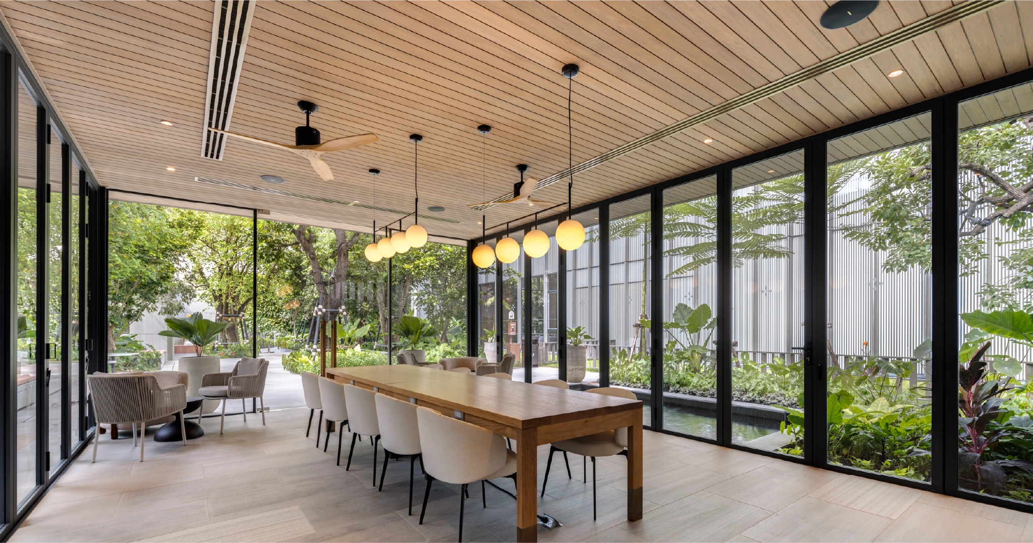 - Private Meeting & Theatre: พื้นที่ส่วนกลางต้องรองรับการพูดคุยได้ทั้งแบบสบาย ๆ และเป็นทางการ เช่น Private Theatre ขนาด 25 ที่นั่งที่ SCOPE LANGSUAN หรือห้องประชุมใหญ่ Conference Room ที่รองรับแขกได้หลายท่านแต่ยังให้ความเป็นส่วนตัว